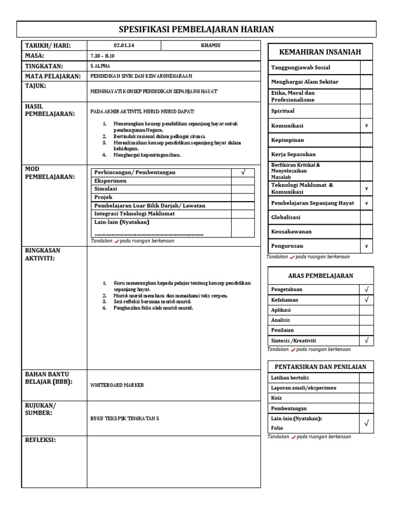 Pendidikan Sepanjang Hayat Tingkatan 5 Lessons Tes Teach