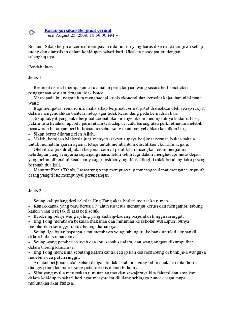 Contoh Karangan Spm Amalan Berjimat Cermat