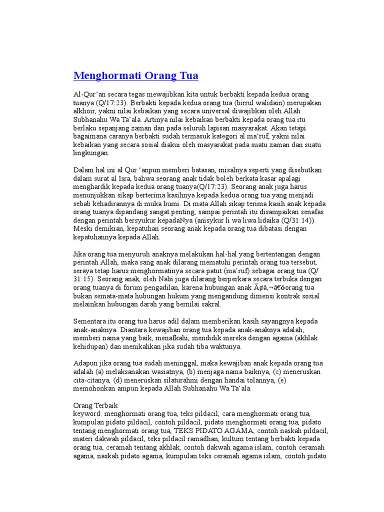 Contoh Pidato Bertema Orang Tua Tolong Ya Brainly Co Id