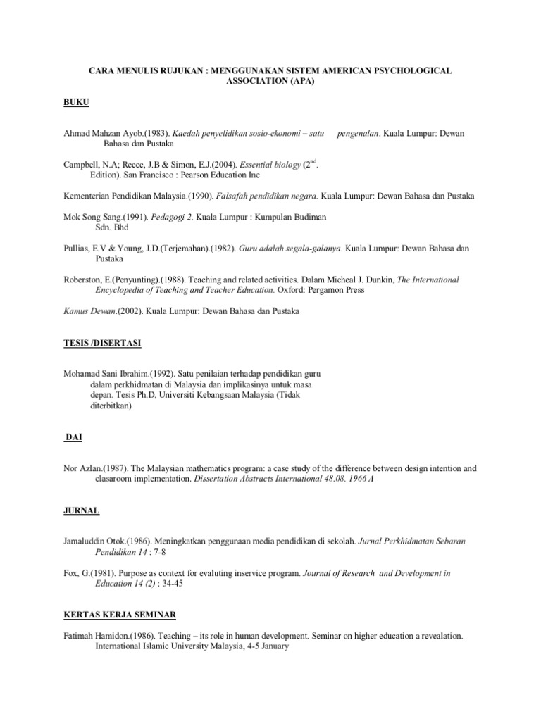 Baik itu penelitian dalam bidang ilmu pengetahuan alam kedokteran sosial teknologi dan lain sebagainya. Penggunaan kaedah apa american psychological association dalam penulisan dan rujukan. Cara menulis daftar pustaka dari jurnal masih banyak orang orang yang dilanda kebingungan tentang cara menulis daftar pustaka apalagi rujukannya dari jurnal memang pada saat melakukan penelitian hal yang wajib ditulis ialah daftar pustaka.