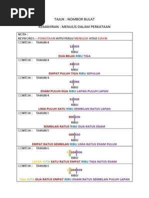 Keriangan Menulis Nombor Dalam Perkataan