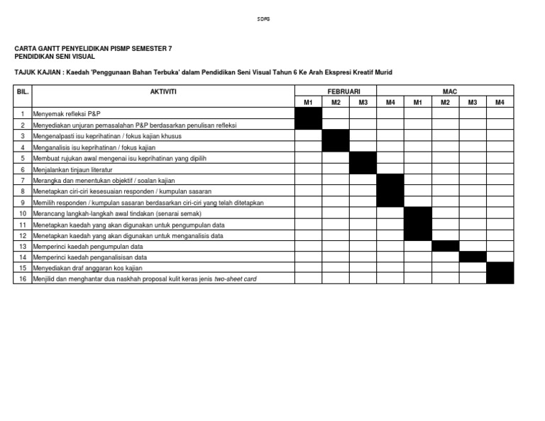 Carta Gantt Untuk Kajian Tindakan Docx Document