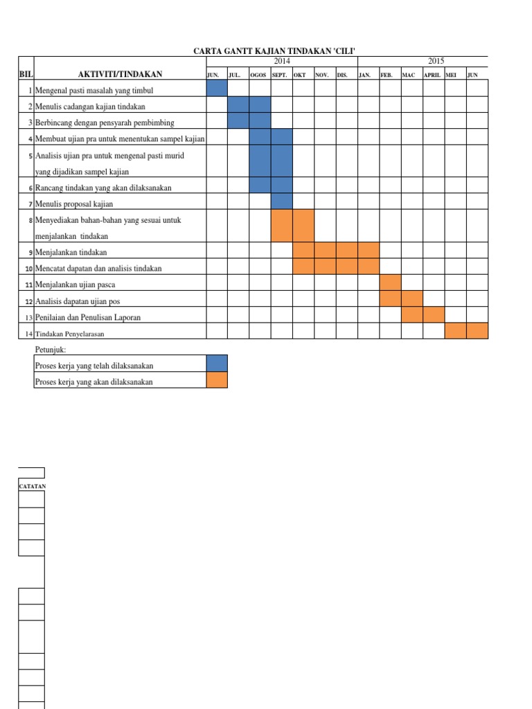 Contoh Carta Gantt Penyelidikan Tindakan