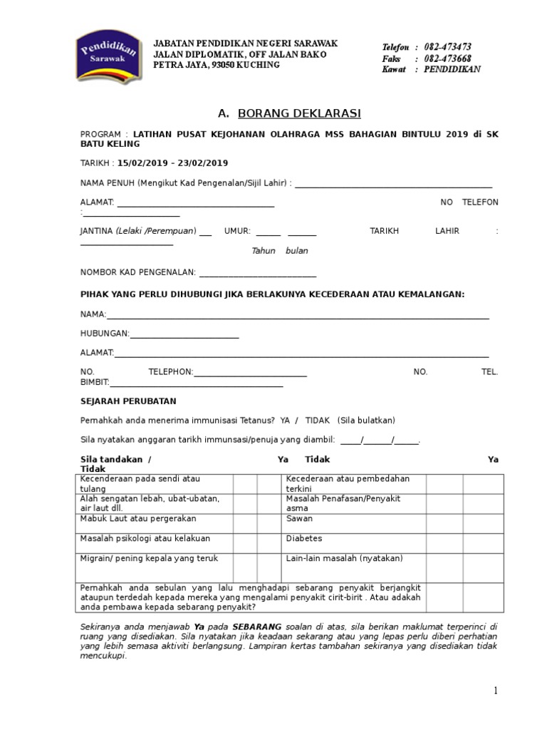 A Borang Deklarasi Jabatan Pendidikan Negeri Sarawak Jalan Diplomatik Off Jalan Bako Petra Jaya 93050 Kuching