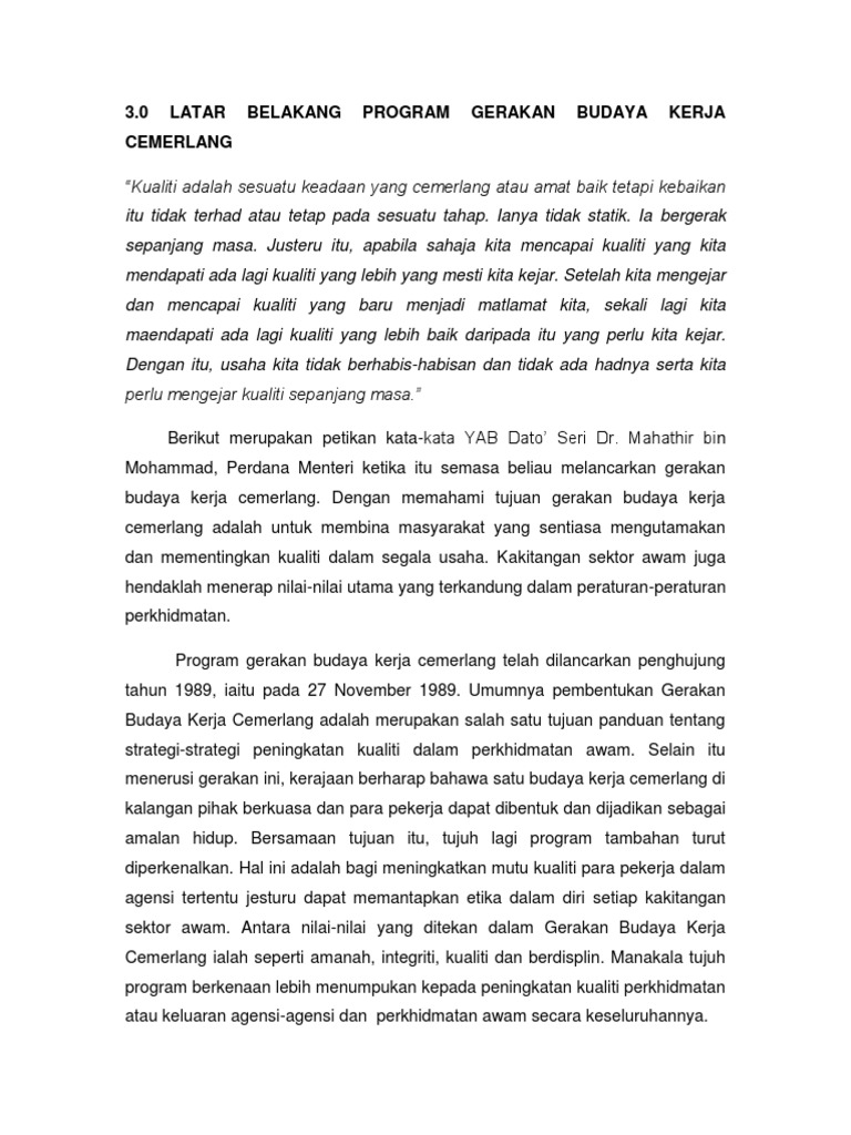 Budaya Kerja Cemerlang Assignments