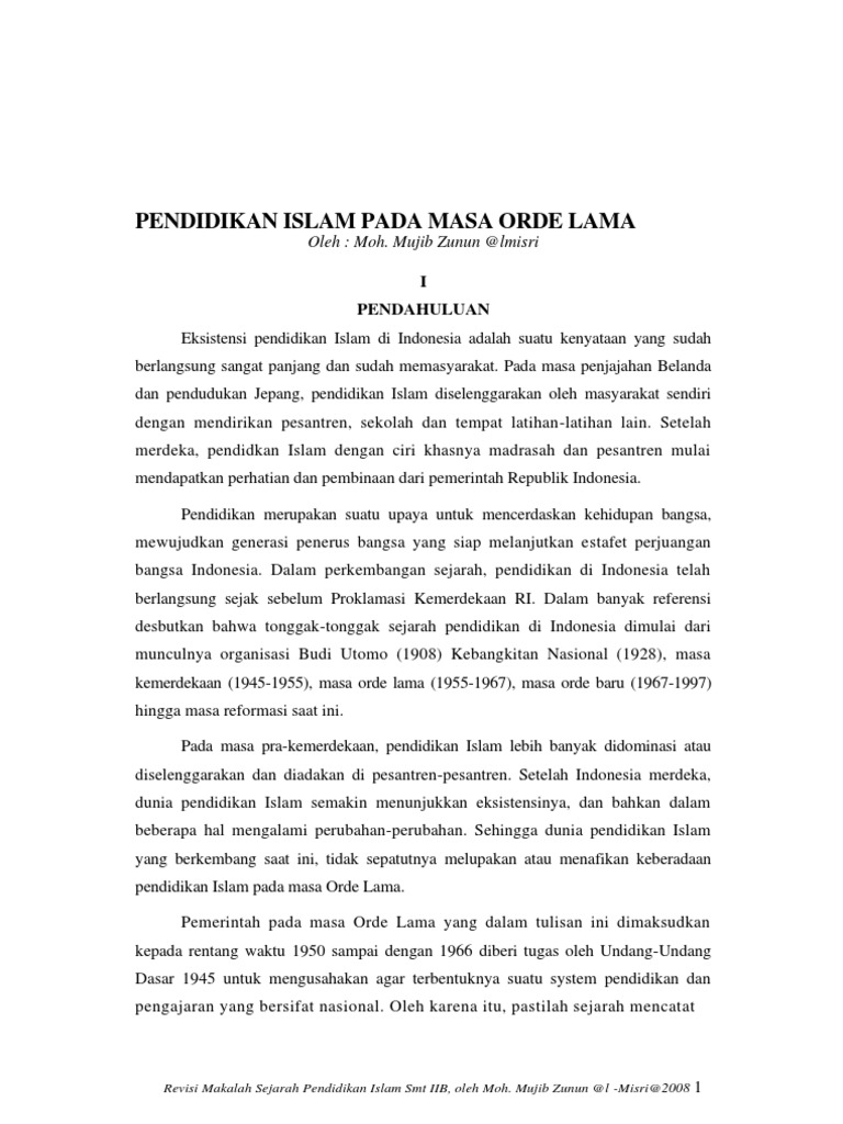 Sejarah Pendidikan Islam Masa Orla