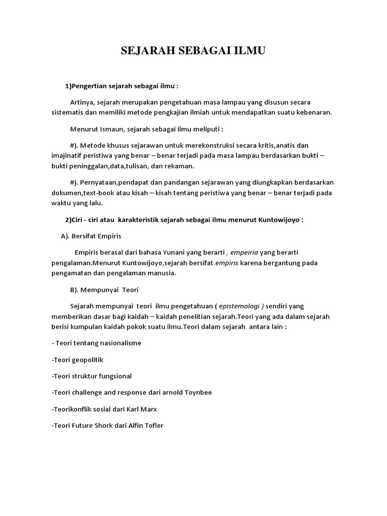 Sejarah sebagai studi keilmuan dapat diartikan sebagai segala sesuatu yang pernah terjadi dan. Ciri ciri sejarah sebagai ilmu pengetahuan berikutnya adalah adanya metode pengamatan.