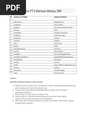 Penggunaan bahasa istana perbendaharaan kata perkataan ertinya 1. Mengadap berjumpa 2. 309819967 contoh ulasan pt3.