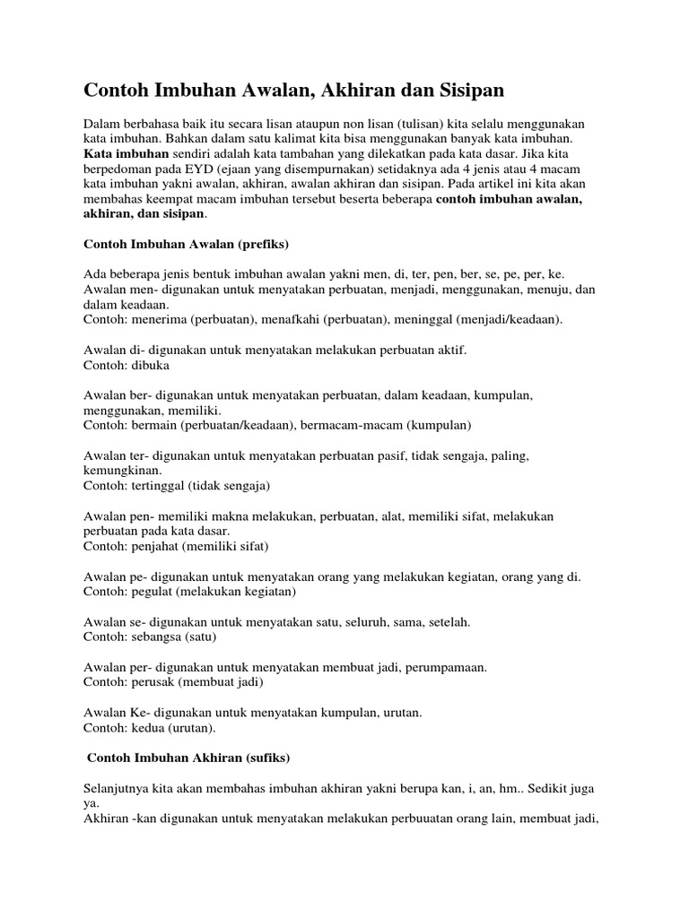 Contoh Imbuhan Awalan