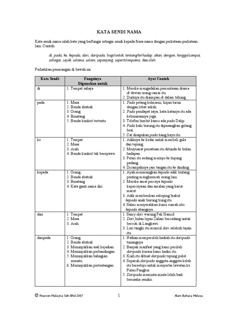 Kata Sendi Nama Dan Contoh Contoh Ayat