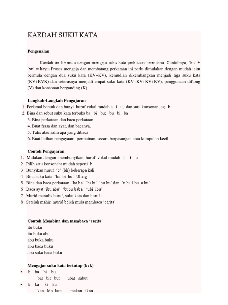 Contoh Suku Kata Terbuka Materi Pelajaran 1