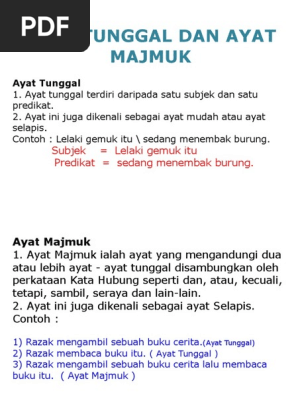 Contoh Ayat Majmuk Dan Ayat Tunggal