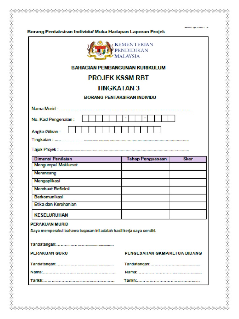Contoh Borang Kajian Keperluan Pelanggan Rbt Tingkatan 3