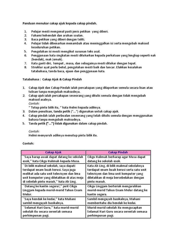 Latihan Cakap Ajuk Dan Cakap Pindah