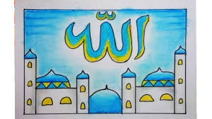 Cara Menggambar Dan Mewarnai Kaligrafi Dan Masjid Yang Mudah Youtube