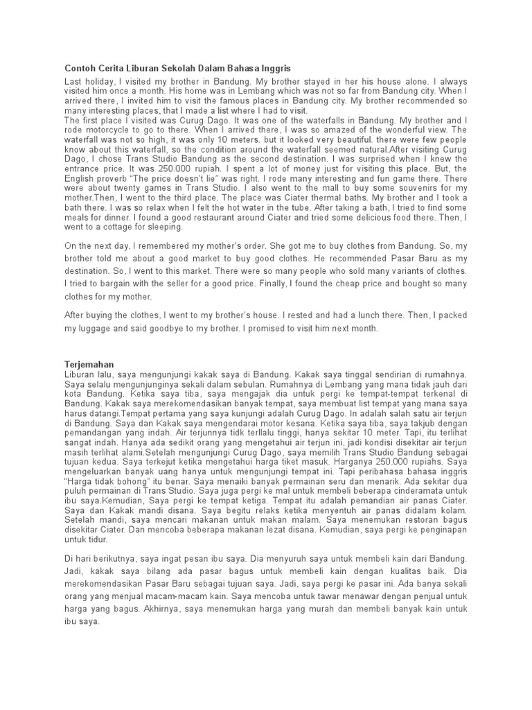 Contoh Cerita Liburan Sekolah Dalam Bahasa Inggris