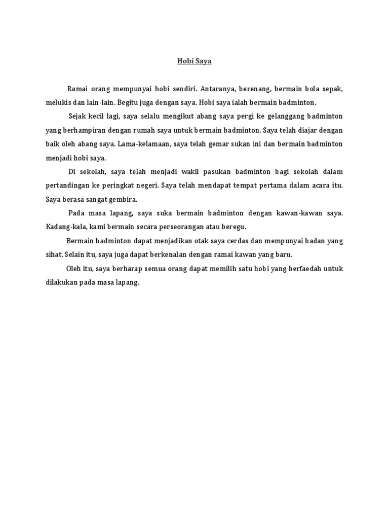 Contoh Karangan Hobi Saya Bermain Badminton Berbagai Contoh
