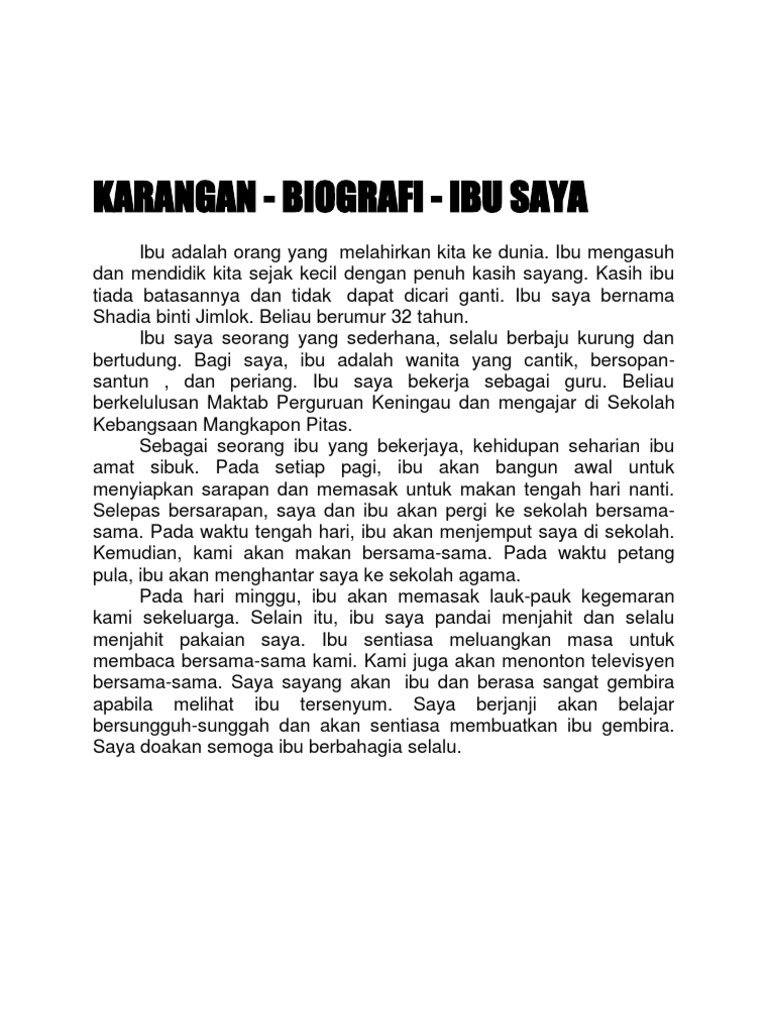 Karangan Biografi Ibu Saya