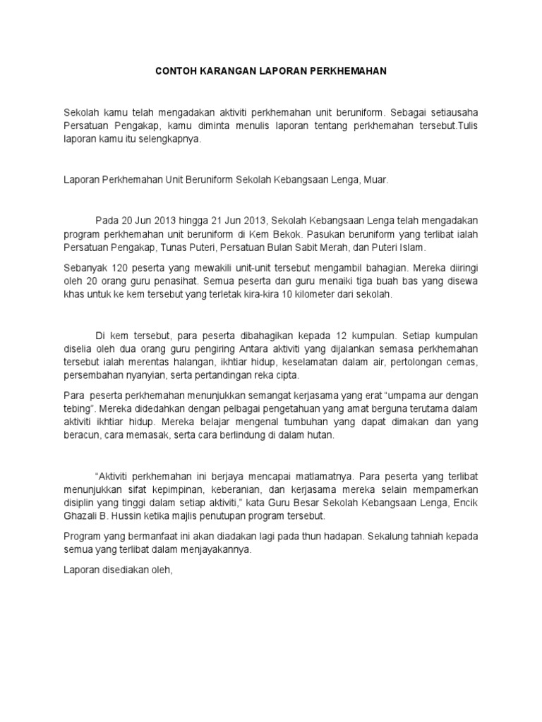 Bahasa Melayu Contoh Karangan Laporan Spm