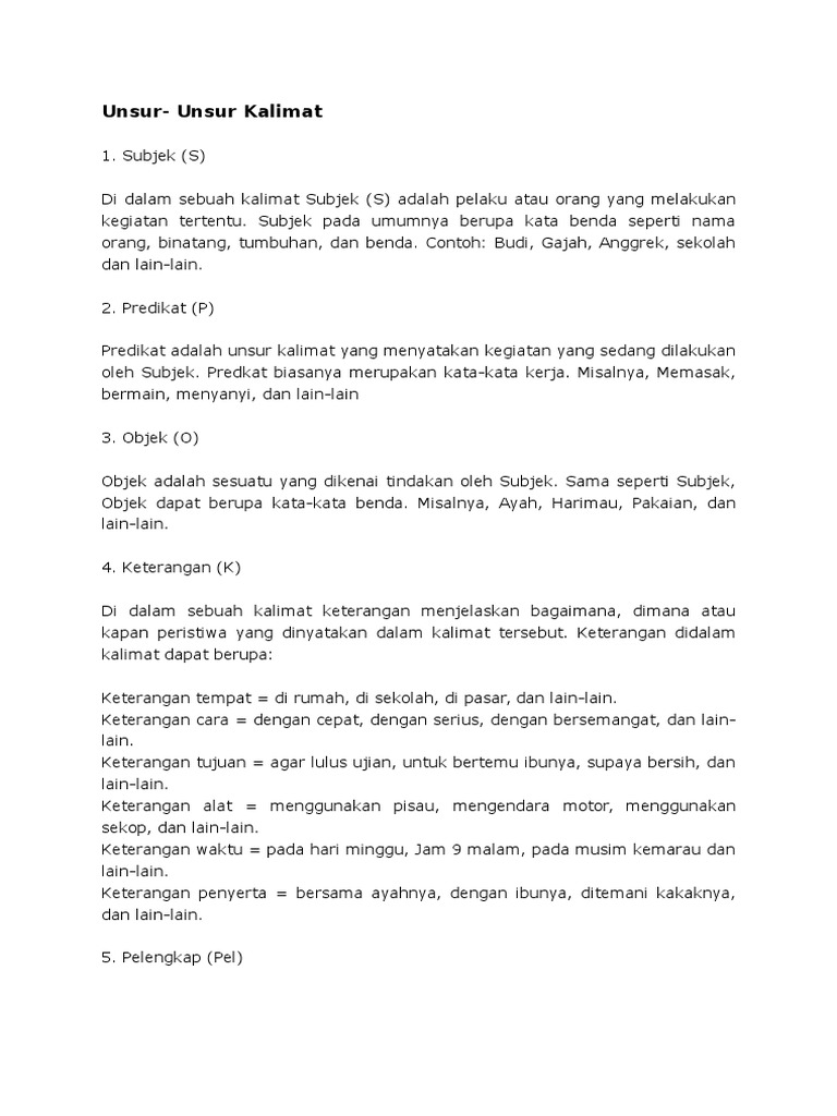 70 Contoh Kalimat Berpola S P O K Jadi Paham
