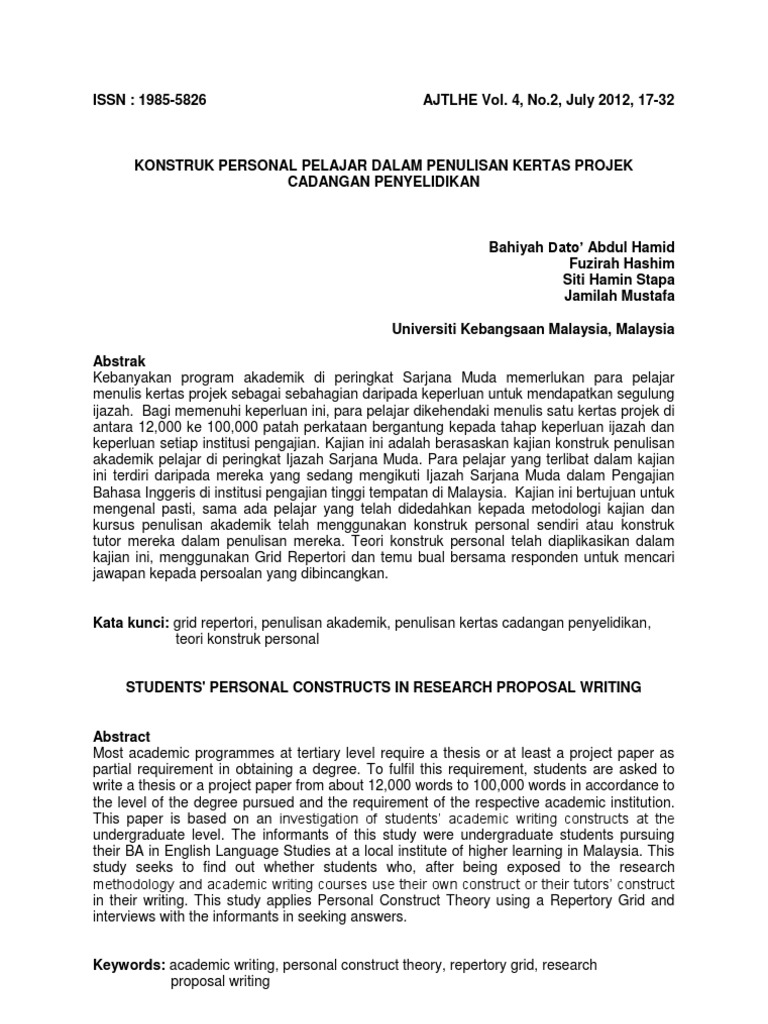 Konstruk Personal Pelajar Dalam Penulisan Kertas Projek Cadangan Penyelidikan