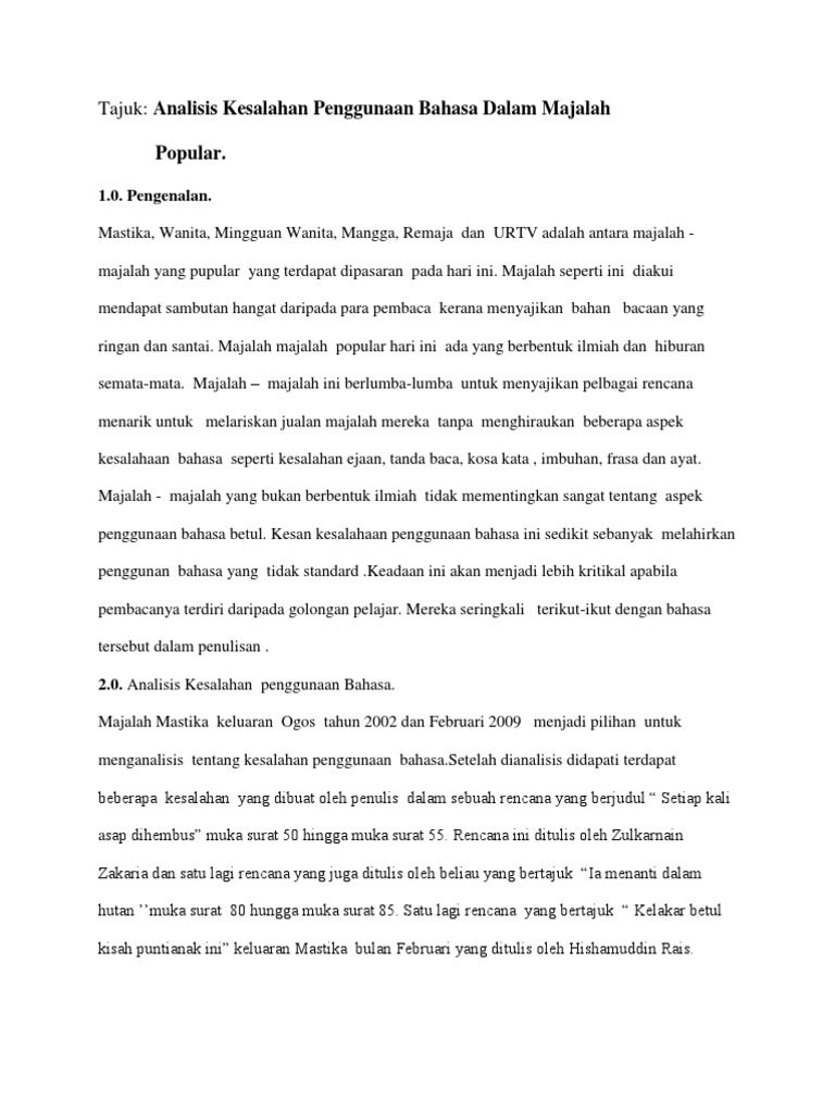 Pdf Analisis Kesalahan Penggunaan Bahasa Dalam Rencana Akhbar