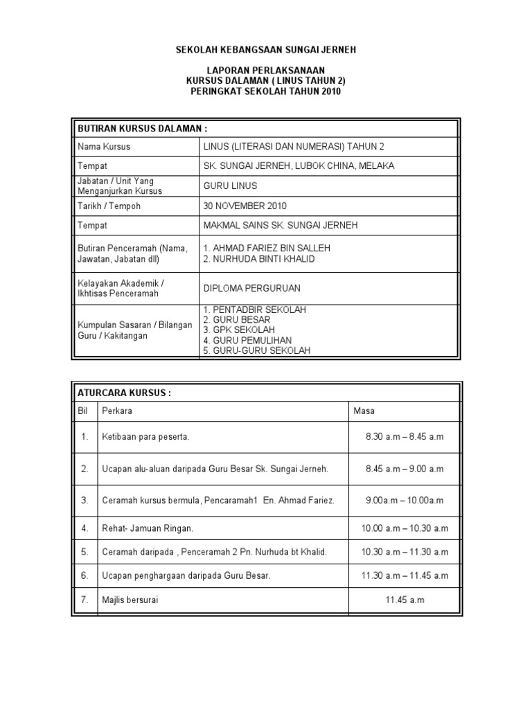 Contoh Laporan Kssr Hasil Dapatan Kursus Dihadiri