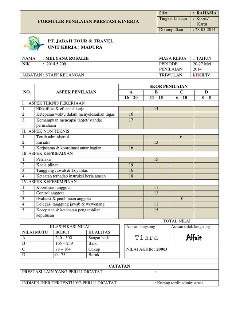 Contoh Form Surat Penilaian Karyawan Perusahaan Swasta Penilaian Surat Belajar